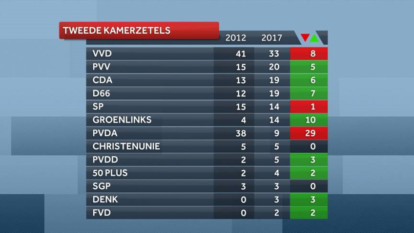 El VVD del Primer Ministre Mark Rutte ha tornat a guanyat les eleccions generals. Molt probablement, ell revalidarà el càrrec al capdavant d’un govern de coalició amb 4 o 5 forces polítiques. Rutte resisteix malgrat el desgast i la clara tendència a la baixa. Dels 41 escons que tenia el seu partit fins ara, el VVD ha revalidat 33. El seu resultat, per tant, és dolent, però millor del que apuntaven algunes enquestes i raonable tenint en compte la davallada dels partits tradicionals -especialment del PvdA, que ha passat de ser segona a setena força-.